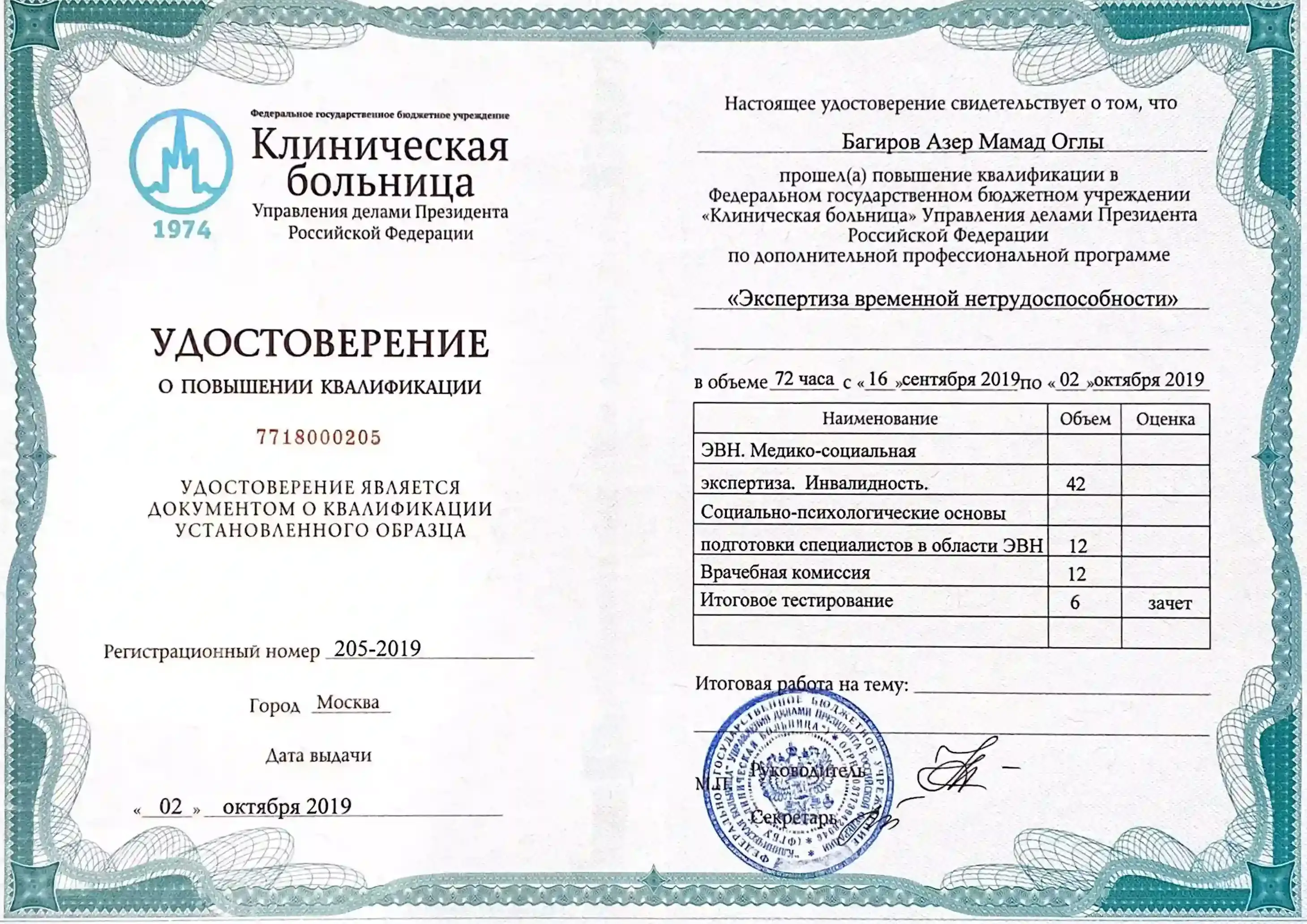 Огромное спасибо главному врачу Багирову Азеру Мамедовичу за профессионализм и уверенность, которую он вселяет!