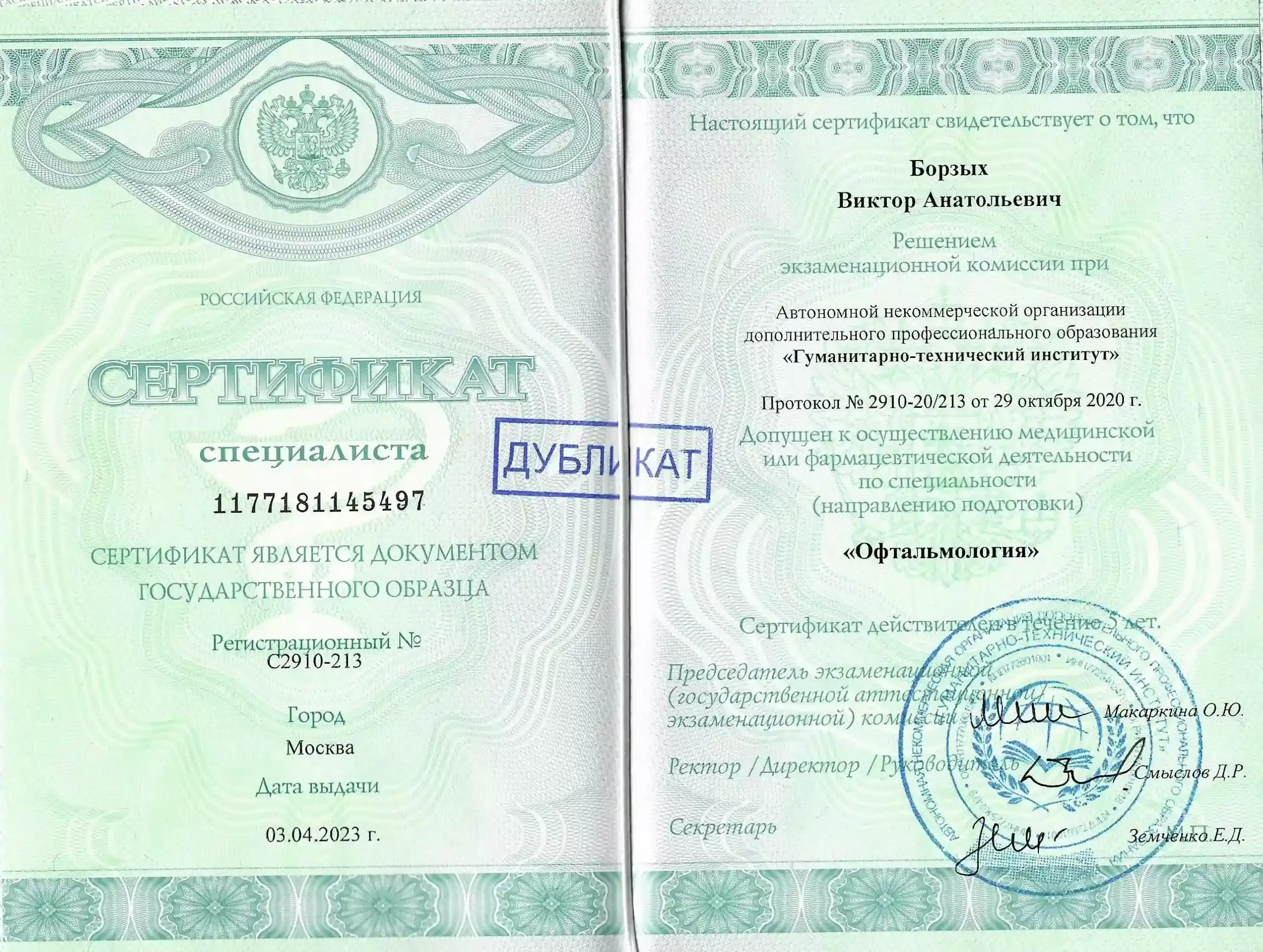 АНО ДПО "Гуманитарно-технический институт". Профессиональная переподготовка по специальности "Офтальмология"
