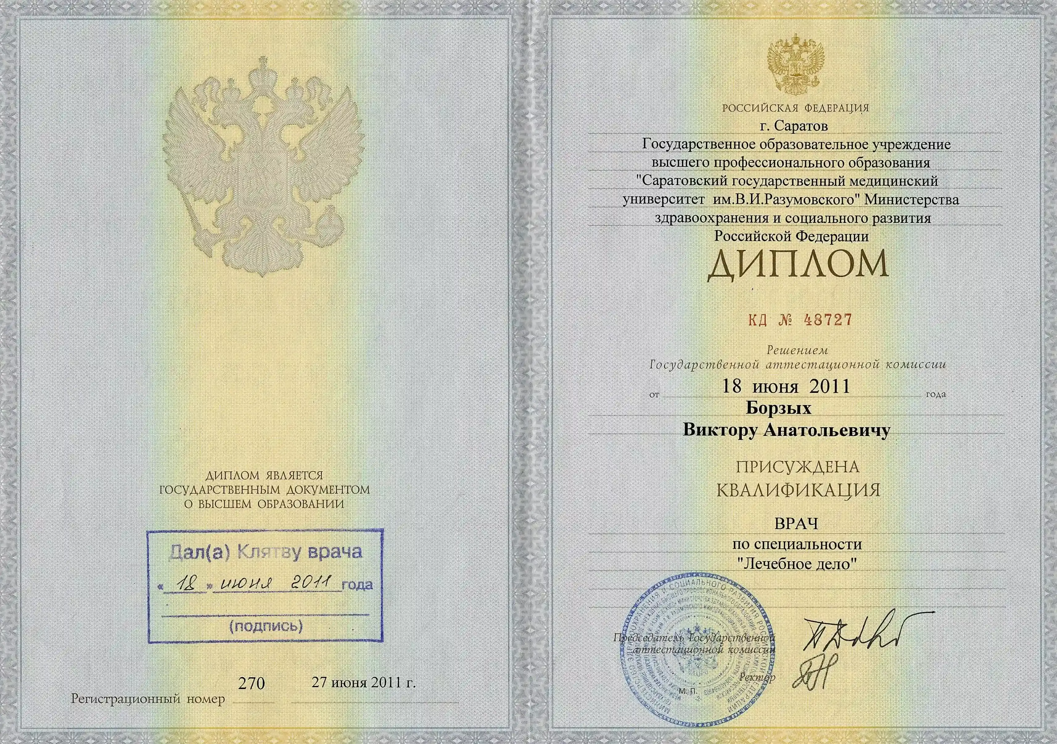 Саратовский государственный медицинский университет им. В.И. Разумовского. Лечебное дело.