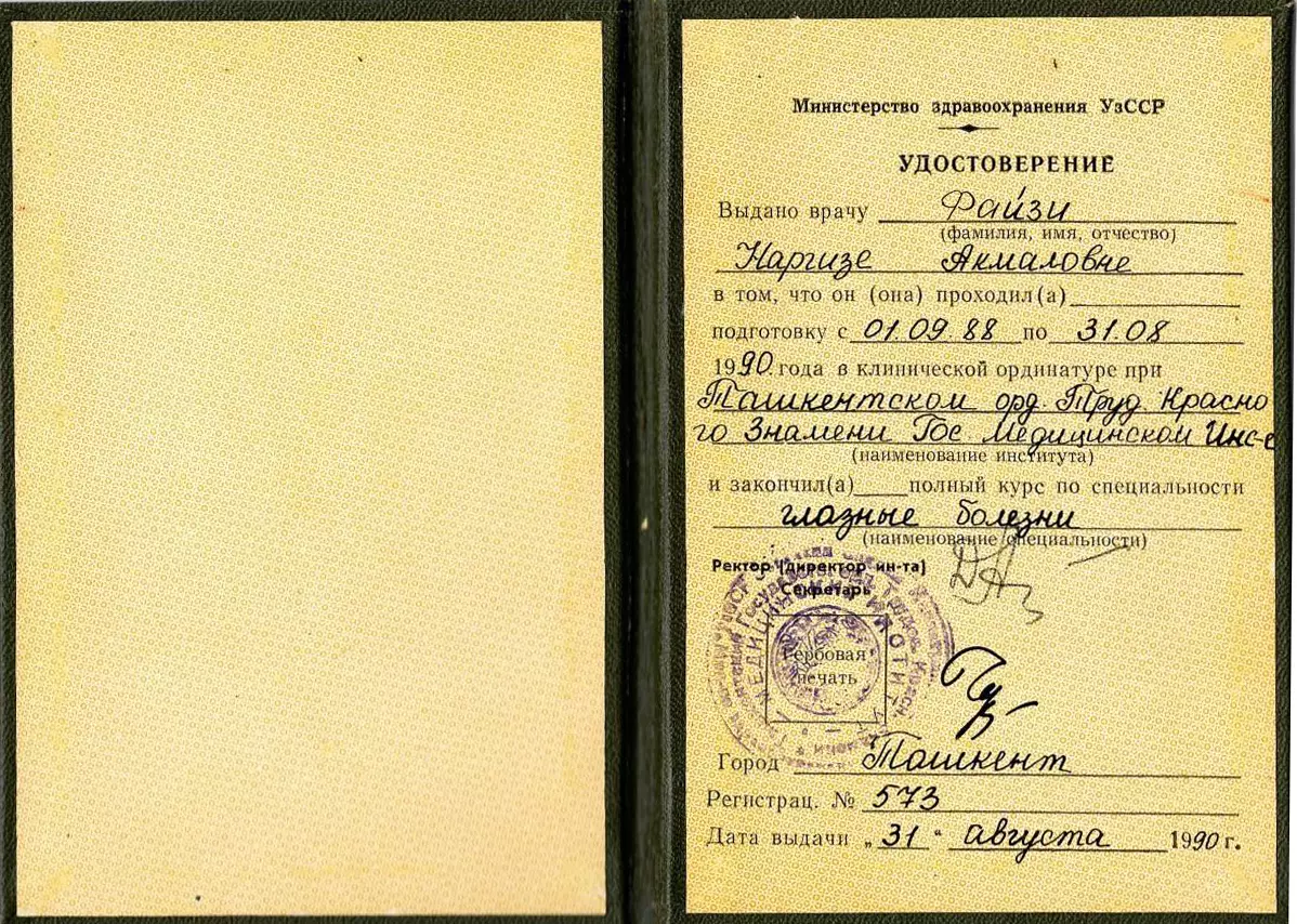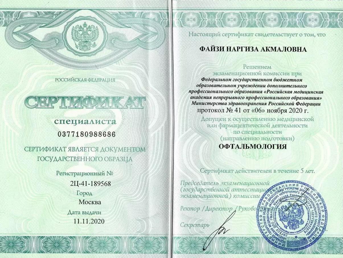 Я обращался к офтальмологу Файзи Наргизе Акмаловне и был приятно удивлен ее профессионализмом и отзывчивостью. Она помогла мне в лечении проблем со зрением, и я очень благодарен ей за это. Даже решил оставить свой первый отзыв в жизни, так как ее работа заслуживает похвалы. Спасибо Вам большое, доктор!