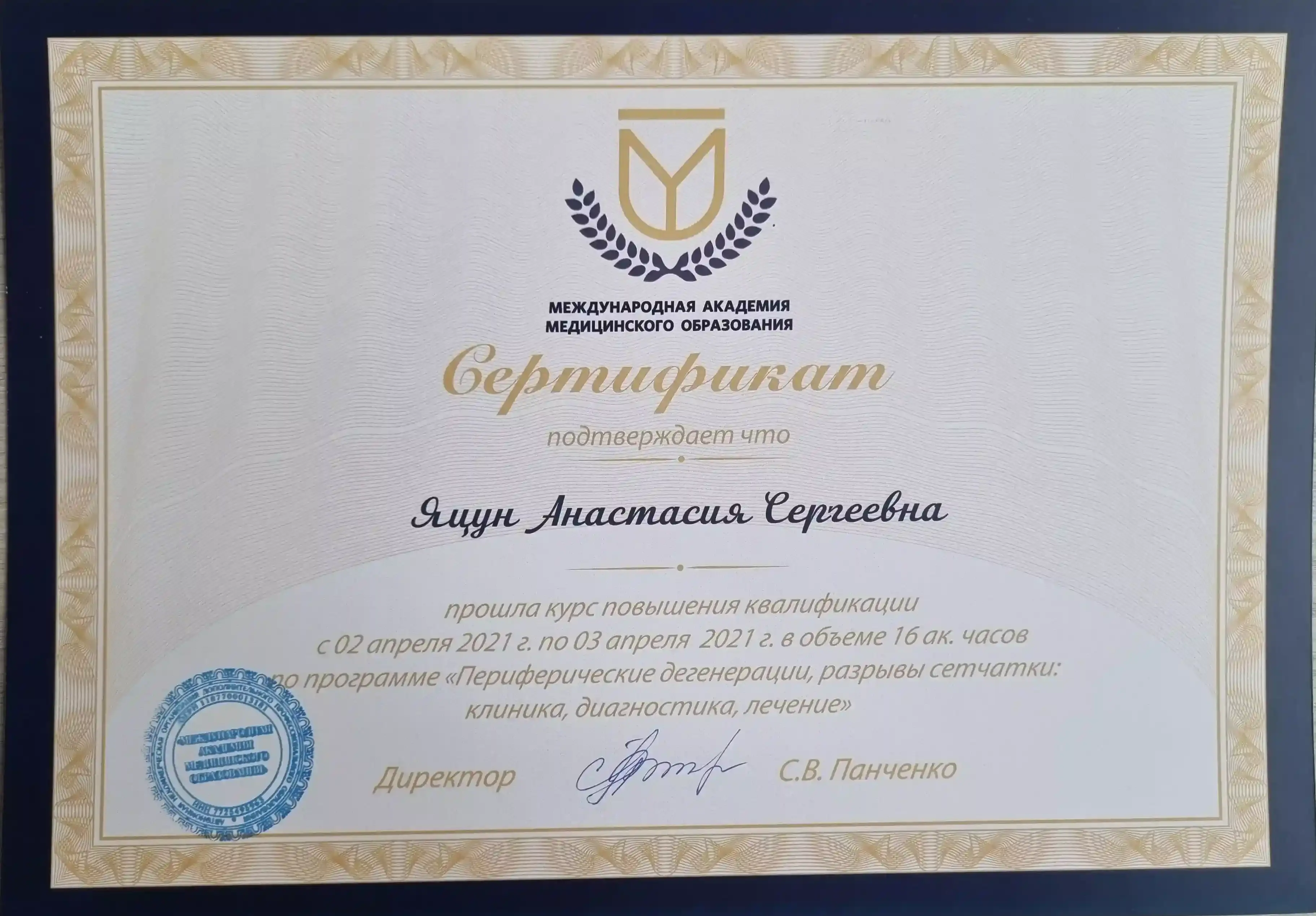 - Член Европейского общества ретинологов (Euretina) с 2018 по 2021 г.