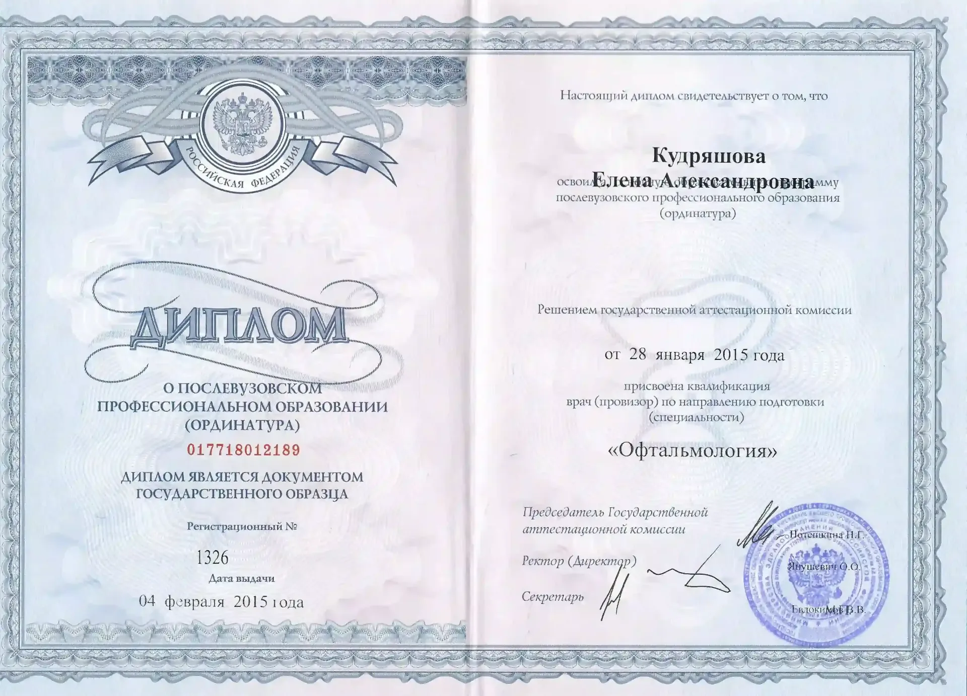 МГМСУ ФДПО (ординатура на базе нии им Гельмгольца), Офтальмология