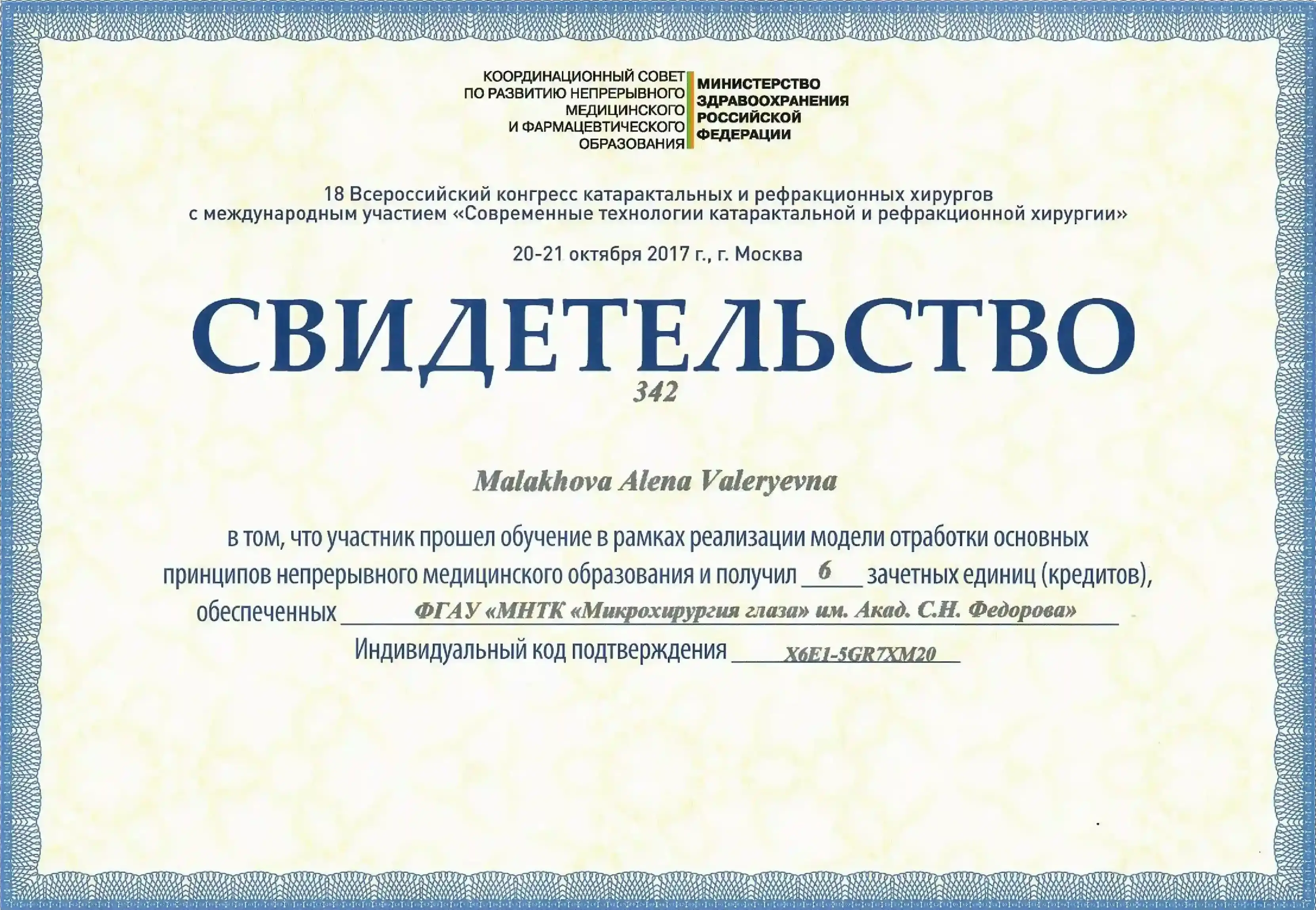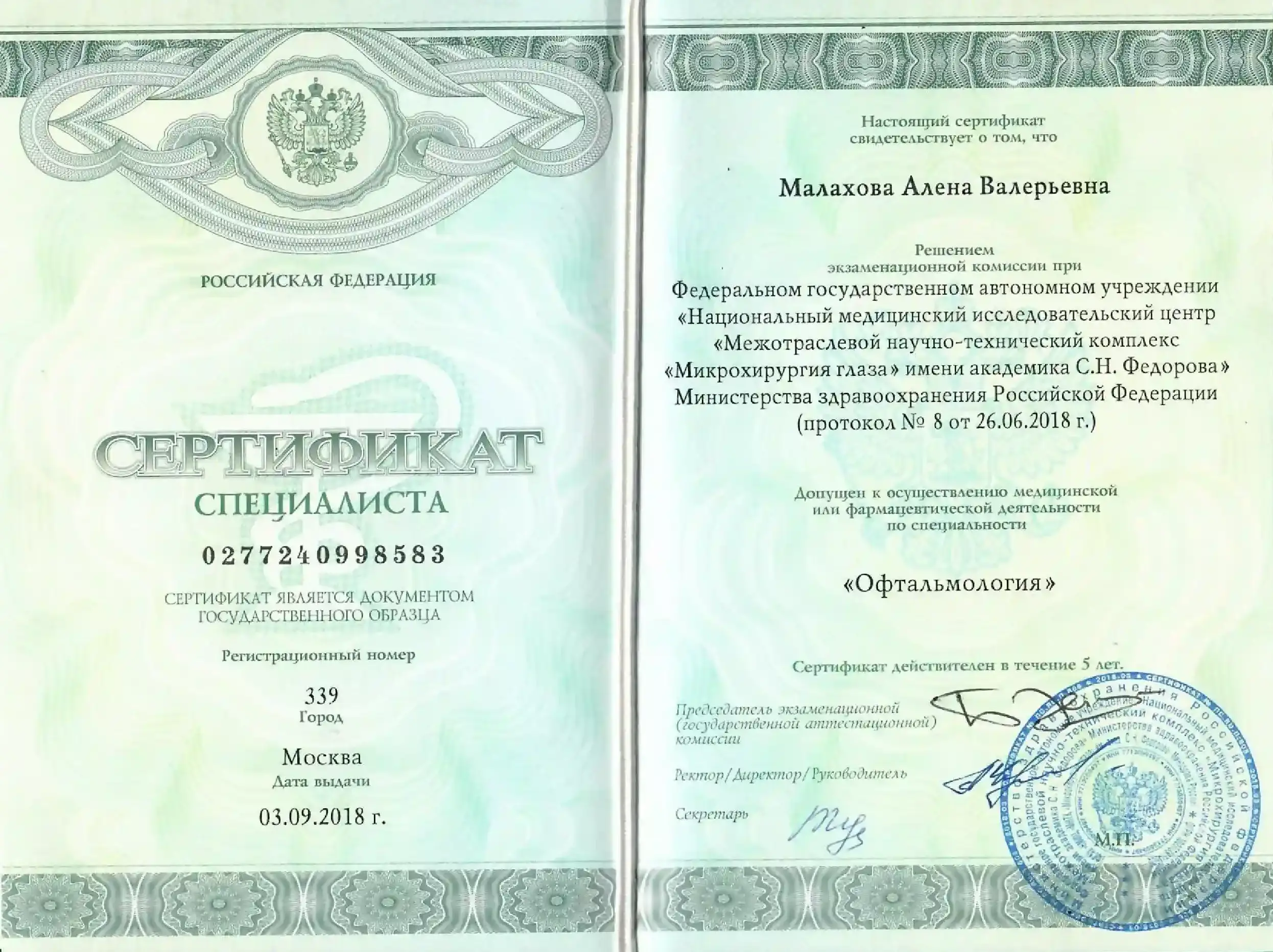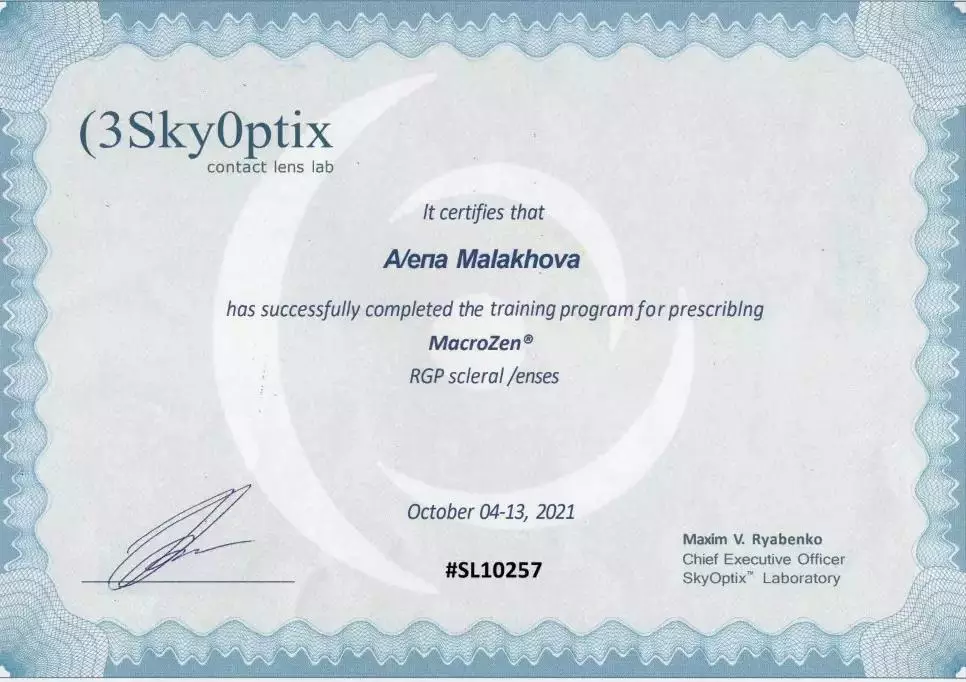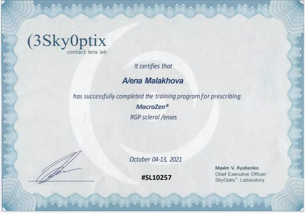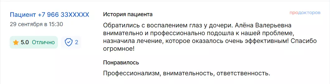 Были неоднократно на приеме с дочерью у Малаховой Алены Валерьевны. Алена Валерьевна нам понравилась с первых минут как доктор - подход к пациенту на высшем уровне, даже если это ребенок! Мы с мужем находились при диагностики зрения нашей дочери. При том, что в нашем случае за год снизилось сильно зрение, Алена Валерьевна помогла нам остановить дальнейшее ухудшение и добиться хорошего результата. Нам (родителям) все подробно рассказала, показала, что происходит со зрением дочери. Дочку, по подборе жестких линз всему научила, Алена Валерьевна никуда не торопилась, все делала основательно, так что выйдя из клиники, наш стресс и паника сменились на благодарность! Врач невероятно профессионально относится к своим пациентам, видно, как Алена Валерьевна любит помогать людям восстанавливать зрение. Я сама давно задумывалась о лазерной коррекции зрения, но смотря на результаты работы Алены Валерьевны, мои сомнения равнялись, и я точно решила сделать лазерную коррекцию.