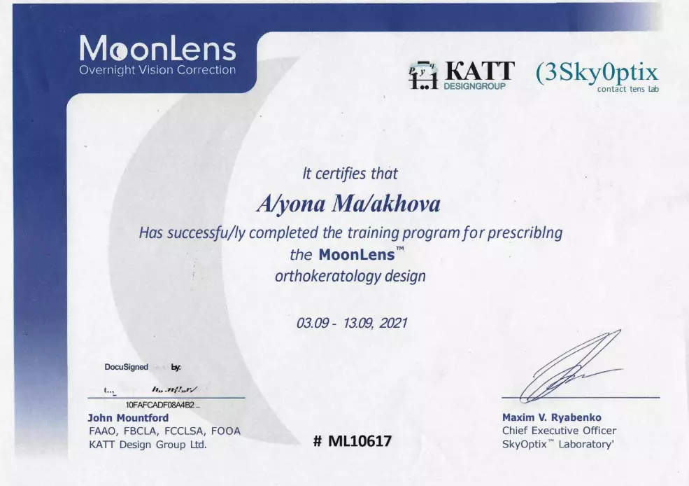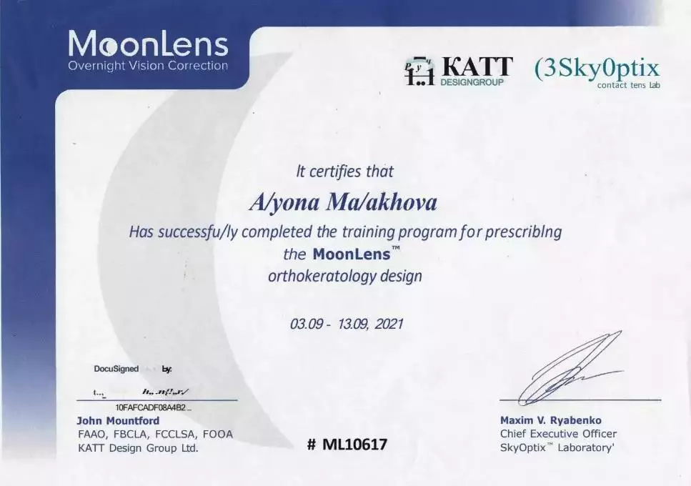 - подбор Ортокератологических линз стандартного дизайна -Moonlens,