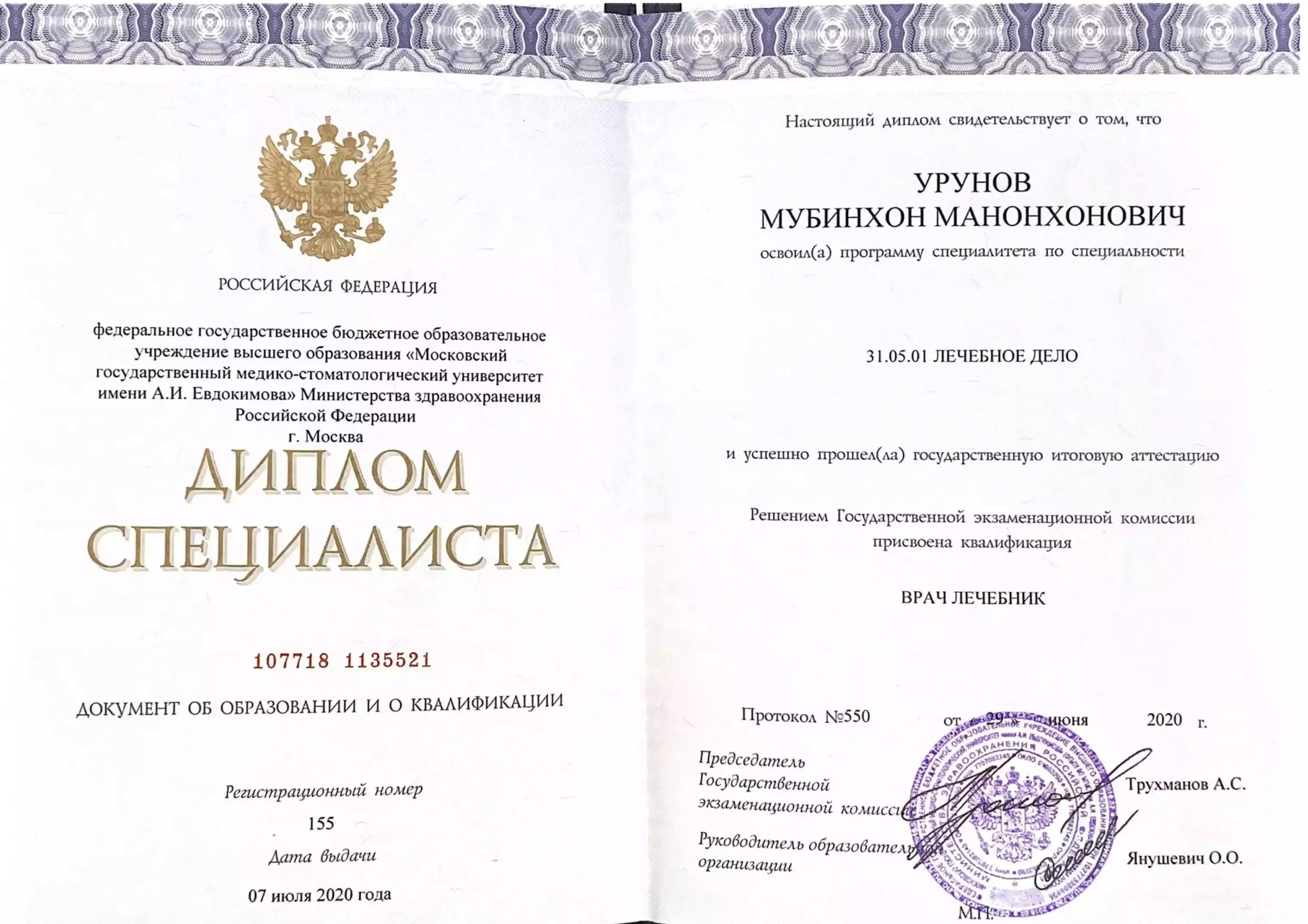 Хочу выразить благодарность Урунову Мубинхону за профессионализм и компетентность. Консультация прошла в очень приятной атмосфере. Доктор внимательно осмотрел меня провел все необходимые исследования и дал полные и понятные ответы на все мои вопросы