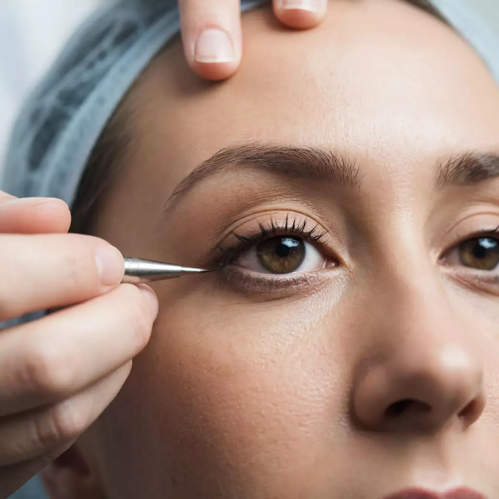 Врач удаляет излишки кожи и жира с век и при необходимости пересаживает удаленный жир в те участки век, где его не хватает. Накладывает внутрикожный косметический шов или закрывает разрез специальным медицинским клеем (бесшовный способ).