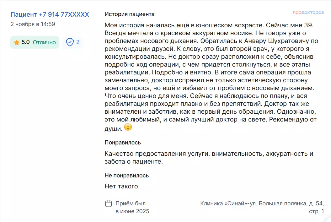Понравилось: Призвание врача - это не навредить пациенту. Степан Степанович - тот врач, который вылечивает своего пациента. Ему можно доверить самое дорогое, что есть у человека - это его здоровье.